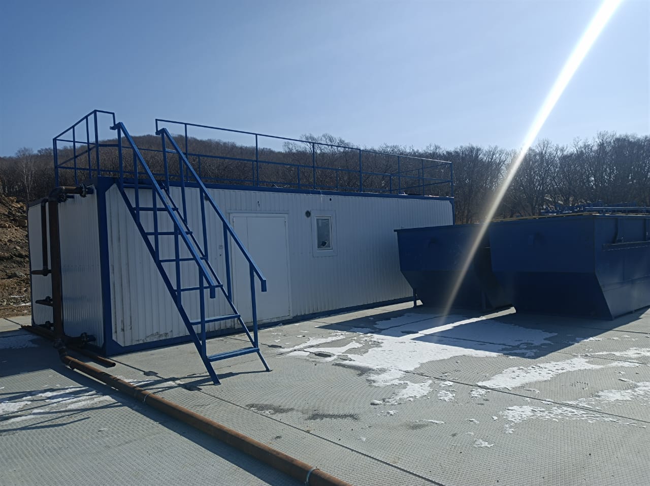 Очистное сооружение «СВИРЬ-2,5БМ», производительностью 2,5 л/с, предназначена для эксплуатации в районе крайнего севера. Представляет собой утепленный блок-контейнер, внутри которого смонтированы блок очистки и вспомогательное технологическое, электротехническое и отопительно-вентиляционного оборудование. Конструкция блок-контейнера представляет из себя несущий металлический каркас на который крепятся ограждающие конструкции типа «сэндвич».